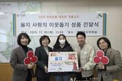 뉴스펀치 박상훈 기자 | 서울 은평구는 지난달 30일 관내 업체인 율지, 라이크스윗과 함께 지역 이웃을 위한 사랑의 성품 전달식을 진행했다고 밝혔다. 이번 기부에는 참기름 업체인 ‘율지’와 반려견 의류 업체 ‘라이크스윗’이 참여했다. 두 업체는 어르신과 보호가 필요한 반려동물을 함께 지원하기 위해 이번 나눔을 마련했다. 율지는 관내 종합사회복지관 경로식당 3곳에 참기름 50병을 기부해 어르신의 건강한 식사를 지원했으며, 라이크스윗은 반려견 의류 348벌을 은평푸드뱅크마켓을 통해 생활이 어려운 반려견 양육 가구에 전달했다. 이예슬 율지 대표는 “작은 정성이지만 지역에 계신 어르신께 따뜻한 한 끼를 도울 수 있길 바라는 마음으로 기부에 참여했다”고 말했다. 이상준 라이크스윗 대표는 “이번 기부로 보호가 필요한 반려동물에게 실질적인 도움이 되길 바란다”고 말했다. 은평구 관계자는 “지역사회를 위한 나눔에 동참해 주신 율지와 라이크스윗에 깊이 감사드린다”며 “앞으로도 민관 협력을 통해 어르신과 반려동물이 함께 행복한 은평을 만들어가겠다”고 밝혔다.