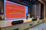 뉴스펀치 조평훈 기자 | 강원특별자치도교육청은 4월 14일 오전 10시 강원특별자치도교육청 6층 대강당에서 전 직원을 대상으로 ‘다름의 이해, 마음의 이음’을 주제로 제46회 장애인의 날 기념행사를 개최했다. 이번 기념행사는 장애인식개선 교육과 연계하여 진행됐으며, 발달장애인과 비장애인이 함께하는 통합오케스트라 ‘아인스바움’의 공연으로 구성됐다. 아인스바움은 ‘하나의 나무’라는 뜻을 가진 사회적 기업으로 장애인, 비장애인, 경계선지능인 등 다양한 구성원이 음악을 통해 진정한 사회통합 모델을 보여주는 단체이다. ‘음악으로 이야기하는 다양성 존중 콘서트’는 발달장애인 인식개선 강사의 스토리텔링과 함께 통합오케스트라 연주, 타악기 퍼포먼스, 노래 등 다채로운 무대를 선보였다. 특히 발달장애인 강사의 유년기와 청소년기의 경험, 그리고 통합 오케스트라 활동을 통해 변화된 삶에 대한 이야기로 감동을 전하고 장애인과 비장이애인이 함께 하나의 선율을 만들어내는 과정을 통해 교직원들이 서로의 다름을 존중하고 사회통합의 필요성을 직접 체감할 수 있는 시간을 가졌다. 장애인의 날을 기념하여 각급학교에서는