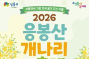 뉴스펀치 박상훈 기자 | 서울 성동구는 오는 3월 27일부터 28일까지 이틀간 봄의 기운을 가득 품은 응봉산에서 ‘2026년 응봉산 개나리 축제’를 개최한다. 응봉산은 한강과 서울숲을 비롯한 서울 동부권을 한눈에 내려다볼 수 있는 도심 속 대표 일출 명소이자 조망명소로 손꼽힌다. 매년 봄이면 산 전체가 개나리꽃으로 가득 차 서울에서 가장 먼저 봄소식을 전하는 곳이다. 이에 구는 개나리 개화 시기에 맞춰 매년 주민 모두가 함께 즐기는 ‘응봉산 개나리 축제’를 개최하고 있다. 올해 축제에서는 ▲ 문화 공연 ▲ 가족 백일장 및 그림그리기 대회 ▲ 체험 프로그램 및 개나리 포토존 등 다채로운 행사들이 펼쳐진다. 첫날인 27일에는 금관악기로 구성된 브라스밴드의 신나는 공연을 시작으로 개막식이 열리며, 인생네컷, 페이스페인팅 등 체험프로그램과 다양한 포토존, 개나리 아치 등 조형물이 설치된다. 이어 둘째 날인 28일에는 소년소녀합창단의 멋진 합창 공연에 이어 300여 명의 어린이와 가족들이 참여하는 ‘백일장 및 그림그리기 대회’가 열린다. 구는 3월 25일까지 구청 누리집(홈페이지)을 통해 대회