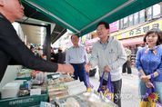 뉴스펀치 탁상훈 기자 | 의왕시는 10월 2일 추석 명절을 맞아 관내 전통시장인 의왕도깨비시장에서 장보기 행사를 개최했다고 밝혔다. 이번 행사는 민족 고유의 명절 추석을 앞두고 전통시장을 활성화하고 지역 상권에 활력을 불어넣기 위해 마련됐으며, 김성제 시장은 의왕도깨비시장을 찾아 상인들을 격려하며 상권의 애로사항을 청취하는 등 뜻깊은 현장 소통의 시간을 가졌다. 이 자리에서 김 시장은 의왕사랑상품권, 온누리상품권으로 제수 용품과 명절 선물 등을 직접 구매하는 등 전통시장 활성화에 앞장섰으며, 전통시장을 찾은 시민들과 명절 인사를 나누며 전통시장의 이용을 당부했다. 김성제 시장은 “앞으로도 지역경제의 중심인 전통시장이 더욱 활성화될 수 있도록 다양한 지원과 관심을 아끼지 않을 것”이라며, “앞으로도 시민과 상인이 모두 상생하는 지역경제 기반 조성에 힘쓰겠다”고 말했다.
