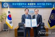 뉴스펀치 김길룡 기자 | 경상국립대학교 총동문회와 재경총동문회는 10월 28일 모교에 발전기금 1000만 원을 기부했다. 이날 기부한 발전기금은 총동문회에서 500만 원, 재경총동문회에서 500만 원을 출연한 것이다. 경상국립대학교 국제처는 이날 오후 2시 가좌캠퍼스 대학본부 3층 접견실에서 발전기금 전달식을 개최했다. 행사에는 권진회 총장, 오재신 국제처장, 황정숙 국제협력과장과 총동문회 회장, 정대인 사무총장, 박시진 사무차장, 정종헌 홍보국장, 강영추 기획처장 등 10여 명이 참석했다. 이로써 경상국립대학교 총동문회는 그동안 모교 발전기금 7000만 원을 기부했고, 재경총동문회는 1460만 원을 기부했다. 이번 발전기금은 총동문회와 재경총동문회가 뜻을 모아 대학과 학생들을 위해 의미 있는 후원을 실천하자는 데 공감하면서 이루어진 귀한 후원금이다. 총동문회는 “이번 기부가 선후배 간의 유대감을 강화하고, 모교 발전에 보탬이 되는 계기가 되기를 바란다.”리고 전했다. 총동문회장은 “경상국립대학교의 발전은 곧 동문 모두의 자부심”이라며 “이번 기부가 대학 발전의 밑거름이 되고, 후배들에게 용기와 희