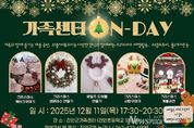 뉴스펀치 김길룡 기자 | 진안군은 가족 소통 공간으로 자리매김하고 있는 진안군가족센터에서 오는 12월 11일 17시 30분 부터‘온데이(ON-DAY) 크리스마스 행사’를 개최한다고 밝혔다. 이번 행사는 가족센터 이용 활성화와 가족 친화 문화 확산을 위해 마련된 것으로, 크리스마스 분위기를 느낄 수 있는 다양한 체험 프로그램과 공연이 준비되어 있다. 특히, 자원순환 플리마켓을 함께 운영해 군민이 직접 참여하는 나눔 문화를 실천하며 자원의 재사용 가치를 되새기는 뜻깊은 시간도 마련된다. 행사에는 진안군 가족이면 누구나 참여 가능하며, 체험 프로그램, 크리스마스 캐롤 공연, 플리 마켓 등의 다채로운 프로그램이 진행된다. 플리 마켓 운영을 위해 가정 내 미사용 물품 기부 참여를 독려하고 있으며, 깨끗한 상태의 재사용 가능한 물품이면 누구나 기부할 수 있다. 박주철 센터장은 “이번 행사가 군민들이 함께 즐기고 나누는 연말 축제일 뿐 아니라, 가족센터를 더 가까이에서 이해하고 활용할 수 있는 의미 있는 기회가 되길 바란다”며, “많은 가족들이 참여해 크리스마스의 따뜻한 정서 속에서 서로의 마음을 나누고 가족애