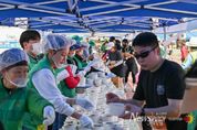 뉴스펀치 박세훈 기자 | 영주시새마을회(회장 우찬우)는 지난 5일 영주소백산마라톤대회가 열린 영주시 국민체육센터 앞에서 참가자와 시민들에게 따뜻한 한 그릇의 온정을 전하는 ‘사랑의 국수 나눔’ 봉사활동을 펼쳤다. 이날 새마을지도자와 부녀회장 50여 명은 이른 아침부터 대회 참가자와 관광객, 시민 등 약 1만여 명에게 나눠줄 잔치국수를 정성껏 준비했다. 특히 회원들은 하루 전부터 깊은 맛을 내기 위한 육수를 끓이며 구슬땀을 흘렸고, 그 정성이 더해진 국수 한 그릇은 행사장을 찾은 이들에게 영주만의 푸근한 인심을 전했다. 이번 봉사활동은 19년째 이어져 온 전통으로, 영주소백산마라톤대회를 찾는 방문객들에게 지역의 따뜻한 이미지를 알리고 공동체 나눔 문화를 확산하는 데 큰 역할을 하고 있다. 우찬우 회장은 “영주를 찾은 많은 분들께 따뜻한 국수 한 그릇으로 푸근한 정을 전할 수 있어 큰 보람을 느낀다”며 “앞으로도 지역사회와 함께하는 나눔 활동을 지속적으로 이어가겠다”고 말했다. 한편, 영주시새마을회는 사랑의 도시락 만들기, 새마을 아카데미, 사랑의 집 고쳐주기, 사랑의 김장 나누기 등 근면