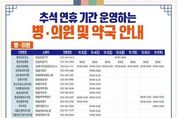 뉴스펀치 김길룡 기자 | 횡성군은 2025년 추석 연휴를 맞아 군민들의 건강과 안전을 보호하기 위해 10월 3일부터 10월 9일까지 7일간 특별대응기간을 설정하고, 응급진료체계를 강화한다고 30일 밝혔다. 연휴 기간 중 응급환자 진료 및 다수 사상자 발생 대비 횡성군보건소에 ‘응급진료대책 상황실’을 설치하고 당번 의료기관 및 약국 민원 안내, 응급의료기관, 문 여는 병·의원 및 약국 운영현황 점검 및 일일보고, 대규모 재난 발생 시 신속한 응급진료체계를 위한 비상연락 유지 등의 임무를 수행한다. 또한, 추석 당일인 10월 6일에는 횡성군보건소에서 오전 9시부터 오후 6시까지 일반진료를 실시하여 군민들의 의료서비스 불편을 최소화할 방침이다. 문 여는 병·의원 및 약국 현황을 확인하는 방법은 다음과 같다. - 전화 문의: 국번 없이 119 또는 129 또는 120 - 어플리케이션 사용: ‘응급똑똑’ 검색 - 인터넷 검색: ‘응급의료포털 E-Gen’ 검색 - 홈페이지 방문: 횡성군청 공식 홈페이지 김영대 횡성군보건소장은 “추석 연휴 기간 응급진료체계 구축