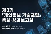 뉴스펀치 조평훈 기자 | 개인정보보호위원회는 12월 22일 서울 용산구에서 개인정보 기술개발 활성화 및 산업 생태계 기반 구축을 위한 제3기 '개인정보 기술포럼(의장 정수환 숭실대 교수)' 총회·성과보고회를 개최했다. 올 한 해 기술포럼은 데이터 경제 시대에 개인정보의 보호와 안전한 데이터 활용을 위하여 공개세미나(1회), 미니세미나(2회) 및 3개 분과별(정책·기술·표준화) 연구모임(18회) 등을 통해 ‘AI 프라이버시 분야 국내외 법제·정책 동향 및 비교 연구’, ‘AI 발전주기와 프라이버시 이슈 분석 연구’ 등 성과를 창출했다. 이날 총회 1부에서는 정수환 의장의 개회사를 시작으로, 이정렬 개인정보위 부위원장의 환영사와 이상중 한국인터넷진흥원 원장의 축사가 이어졌다. 이후 ’25년 제3기 기술포럼의 주요 성과 및 ’26년 기술포럼 운영 방향에 대한 보고회가 진행됐다. 이어서 2부에서는 정책, 기술, 표준화 3개 분과별로 주요 성과를 발표·공유하는 시간을 가졌다. 현장에는 그간 개인정보위가 추진해온 개인정보 기술 연구개발(R&D) 사업 중 올해 기술개발이 완료된 기술 일부의 시연 부스를 설치하여, 총회를 찾