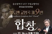 뉴스펀치 김길룡 기자 | 울산 남구 구립교향악단(지휘자 이태은)은 16일 오후 7시 30분, 울산문화예술회관 대공연장에서 ‘2025 송년음악회’를 열고 한 해를 마무리하는 품격 높은 클래식 무대를 선보인다. 정기연주회는 전석 무료로 운영되며 송년을 맞아 시민들이 음악과 함께 따뜻한 시간을 보낼 수 있는 뜻깊은 자리가 될 것으로 기대된다. 이번 공연은 베토벤의 대표 걸작인 교향곡 제9번‘합창’을 중심으로 구성돼 연말의 의미를 더욱 깊게 하는 웅대한 울림과 감동을 관객들에게 전하고자 울산시립합창단·남구 구립합창단과 쟁쟁한 협연자들이 함께해 총 200여 명의 연주진이 참여한다. 공연은 베토벤 피델리오 서곡, 후베이 카르멘 판타지, 앤더슨의 크리스마스 페스티발 등 다채로운 곡들로 1부가 구성되며 2부에서는 베토벤 교향곡 제9번 ‘합창’ 4악장으로 힘과 희망을 담은 메시지를 객석에 전하게 된다. 남구 관계자는 “구립교향악단이 연말을 대표하는 명품 클래식 공연을 선보이며 남구 문화예술의 저력을 보여주고 있다”며 “앞으로도 많은 시민이 문화로 소통하고 감동을 나눌 수 있도록 구립교향악단 운영과 문화예술 향유기