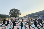 뉴스펀치 김길룡 기자 | 강원관광재단은 9월 27일 화천군 거례리 사랑나무에서 개최한 ‘별빛이 내리는 요가’ 행사를 약 60명의 참가자가 함께하며 성공적으로 마무리했다. 이번 행사는 소규모로 진행돼 참가자들이 보다 깊이 있는 체험과 교감을 나눌 수 있었다. 해가 지고 어둠이 깔린 자연 속에서 이색적이고 화려한 조명들을 배경으로 전문 요가 강사의 지도로 진행된 ‘별빛 요가’는 자연과 하나 되는 편안한 음악 속에서 요가와 명상을 통해 긴장을 풀고 내면의 평온을 되찾는 특별한 힐링의 시간이 됐다. 요가 프로그램에 앞서 ▲감성 프로필 사진 촬영 ▲플라잉요가 ▲나만의 무드등 만들기 ▲편백나무 아로마 힐링 등 다양한 체험 프로그램이 함께 운영됐다. 특히 요가 강사가 직접 플라잉요가를 설명하고 참가자들의 프로필 사진 촬영을 도와주어 큰 호응을 얻었다. 참가자 전원에게는 푸짐한 선물도 제공됐다. ▲지앤씨(GNC)콜라겐 ▲화천 특산 들기름 ▲화천사랑상품권 ▲요가 양말 ▲조명 장미꽃·화병 ▲미니캐리어 ▲임산부와 미취학아동을 위한 짐볼 ▲인형 등 실용적이고 감성적인 구성의 선물로 만족도를 더욱