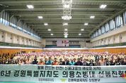 뉴스펀치 조평훈 기자 | 강원특별자치도는 2월 24일 원주에서 김진태 도지사와 김시성 도의회 의장을 비롯한 도의원, 관계기관장, 의용소방대원 등 800여 명이 참석한 가운데 전국에서 두 번째 사례로 '강원특별자치도 의용소방대 산불진화대 발대식'을 개최했다고 밝혔다. 강원은 전체 면적의 약 81%가 산림으로 구성된 지역적 특성상 산불이 곧 도민의 생명과 재산, 산림자원에 직결되는 중대한 재난으로 이어질 가능성이 높다. 이에 도는 의용소방대를 중심으로‘산불진화대’를 별도 편성하여, 봄·가을철 산불조심기간 동안 예방 중심의 활동을 강화하고, 산불 발생 시 신속한 초기 대응 및 확산 방지 지원체계를 구축한다. 도내 18개 소방서 소속 720명으로 구성된 산불진화대의 주요 역할은 ▲ 산림 인접 마을 및 취약지역 순찰·예방 홍보 ▲ 비상소화장치 점검 및 예비주수 활동 ▲ 산불 발생 시 초기 진화 및 방화선 구축 보조 ▲ 주거지·문화재 등 보호대상 방어 활동 지원 ▲ 현장 통제 및 주민 대피 지원 등으로 초기 진화 역량을 현장에서 즉각 가동하는 데 중점을 둔다. 도는 실질적인 대응 역량 강화를 위해 전문교육을