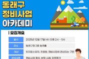 뉴스펀치 김길룡 기자 | 부산 동래구는 오는 12월 17일 오후 2시, 동래구청 2층 동래홀에서 재개발 및 재건축 정비사업에 대한 주민들의 이해를 높이고 추진 과정에서 발생할 수 있는 분쟁을 예방하기 위해 ‘2025년 동래구 정비사업 아카데미’를 실시한다고 밝혔다. 이번 교육은 조합 임원, 조합원, 토지 등 소유자 그리고 일반 주민을 대상으로 관련 분야 전문가를 초빙해 50분씩 총 3부로 진행된다. △1부에서는 한눈에 들어오는 정비사업의 이해 및 절차 △2부에서는 '도시 및 주거환경정비법' 관련 계약 및 분쟁 사례 △3부에서는 정비사업과 관련한 감정평가의 이해를 주제로 교육이 이어질 예정이다. 아카데미 참석을 희망하는 주민은 별도의 수강 신청 없이 당일 현장 참여가 가능하며, 자세한 사항은 동래구 건축과로 문의하면 된다.