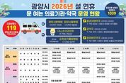 뉴스펀치 김용희 기자 | 광양시는 설 명절 연휴 기간 시민과 귀성객들이 안전하고 편안한 명절을 보낼 수 있도록 2월 14일부터 18일까지 5일간 ‘설 연휴 종합상황실’을 운영한다고 밝혔다. 이번 종합상황실은 ▲총괄반 ▲생활민원기동반 ▲재난상황반 ▲진료대책반 ▲일반민원처리반 등 총 5개 반, 하루 평균 39명이 근무하는 체계로 연휴 기간 총 195명의 인력을 투입해 운영되며, 각종 비상 상황에 신속하고 체계적으로 대응해 연휴 기간 발생할 수 있는 생활 불편을 최소화할 계획이다. 먼저 총괄반은 종합상황실 운영 전반을 총괄하며 각 반의 상황을 종합 관리하고, 연휴 기간 상황 유지와 신속한 의사결정을 담당한다. 생활민원기동반은 환경·도로·교통·수도·쓰레기 수거·가로등 등 시민 일상과 직결된 민원을 집중 처리해 연휴 중 불편 사항을 신속히 해소하며, 재난상황반은 자연재해와 각종 긴급 상황에 대비해 24시간 대응 체계를 유지하며 시민 안전 확보에 만전을 기한다. 특히 진료대책반은 연휴 기간 지역 내 응급의료기관과 긴밀히 협력해 24시간 응급실과 당번 의료기관·약국 운영 체계를 유지함으로써 갑작스러운 응급 상황
