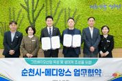 뉴스펀치 김용희 기자 | 순천시가 글로벌 토탈 라이프케어 전문기업 ‘메디앙스(주)’와 손잡고 대한민국을 대표하는 그린바이오 산업 생태계 조성에 본격적으로 나선다. 순천시는 10일 순천시청에서 노관규 순천시장과 메디앙스 박수찬 대표이사 등 관계자들이 참석한 가운데 ‘그린바이오 산업 육성 및 생태계 조성을 위한 업무협약’을 체결했다고 밝혔다. 이번 협약은 순천시의 생태․정원 자원과 메디앙스의 고도화된 생산‧연구 역량을 결합해, 지역과 기업이 동반 성장하는 지속가능한 산업 모델 구축을 위해 마련됐다. 보령그룹에서 분리된 메디앙스는 비앤비(B·B), 닥터아토, 유피스 등 천연, 비자극 대표 브랜드를 보유한 기업으로 2025년 무역의 날 ‘수출의 탑’을 수상하는 등 독자적인 글로벌 브랜드로 성장하고 있다. 특히 자연유래성분 제품으로 중국 광군제 유아 세제부문 11년 연속 판매 1위를 기록하는 등 글로벌 시장에서의 수요 폭발로 매출 확대가 이어지고 있다. 이에 급증하는 수출 물량에 대응하고 안정적인 생산 기반 확보를 위해 독보적인 친환경 생태가치와 인프라를 지닌 순천 그린바이오산업 육성지구에 신규
