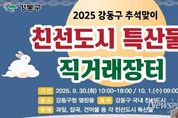 뉴스펀치 김완규 기자 | 강동구는 2025년 추석을 맞이해 오는 9월 30일과 10월 1일 이틀간 강동구청 열린뜰에서 ‘친선도시 특산물 직거래장터’를 개최한다고 29일 밝혔다. 이번 행사는 강동구가 전국 지자체와 맺은 교류 협력을 바탕으로, 지역 농가의 판로 확대와 도농 상생을 도모하기 위해 마련됐다. 올해 새롭게 친선결연을 맺은 강원도 영월군을 포함해 총 21개 국내 도시가 참여하며, 직접 산지에서 올라온 35개 농가가 다양한 특산물을 선보일 예정이다. 특히 원주 찐빵, 홍천 한과, 거창 곶감, 의성 복숭아, 완도 미역 등 전국 각지에서 올라온 신선하고 품질 좋은 농특산물을 시중가 대비 최대 40% 저렴한 가격에 구매할 수 있어 구민들의 많은 관심이 기대된다. 이번 장터는 9월 30일 오전 10시부터 오후 6시까지, 10월 1일 오전 9시부터 오후 5시까지 운영되며, 누구나 자유롭게 방문해 구매 가능하다. 이수희 강동구청장은 “이번 직거래장터는 구민들에게는 믿을 수 있는 먹거리를 제공하고, 참여 농가에는 안정적인 판로를 마련해주는 뜻깊은 행사”라며, “앞으로도 친선도시와의 협력을 통해 지속 가능한