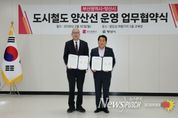 뉴스펀치 박세훈 기자 | 양산시는 30일 오후 2시 양산선 차량기지 내에서 부산광역시와 ‘양산선 운영 업무협약’을 체결하고 도시철도 운영 협력체계 구축에 나섰다고 밝혔다. 이번 협약은 부산도시철도 1호선 노포역과 2호선 양산중앙역의 직접 연결을 통해 환승체계를 구축하고, 양산선 도시철도의 안정적인 운영과 시민 교통편의 증진을 위해 마련됐다. 이를 위해 부산광역시와 양산시는 도시철도 운영에 대한 역할을 분담하고 상호 협력하기로 했다. 협약식에는 박형준 부산광역시장과 나동연 양산시장을 비롯한 양 기관 관계자들이 참석한 가운데 진행됐다. 협약에 따라 양산선 본선 구간은 양산시가 담당하고, 부산도시철도 2호선 연결 구간은 부산광역시가 담당하게 된다. 또 양 기관은 도시철도 운영과 관련된 정보 공유와 안전관리, 이용객 편의 증진을 위한 협력체계를 구축해 나갈 계획이다. 양산선은 개통 이후 부산과 양산을 연결하는 중요한 광역교통 수단으로 역할을 할 것으로 기대되고 있다. 특히 이번 협약은 시민의 교통편의를 최우선으로 두고 두 지자체가 협력과 상호 양보를 통해 운영 방안을 마련했다는 점에서 의미 있는 행정 협력