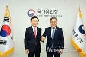뉴스펀치 박세훈 기자 | 고령군은 3월 30일 허민 국가유산청장과 면담을 갖고, 세계유산 도시‧대가야 고도 고령의 역사적 가치를 제고하기 위한 핵심 현안사업의 당위성을 설명하며 국가 차원의 적극적인 지원을 건의했다. 이날 고령군이 국가유산청에 건의한 주요 현안사업은 대가야의 역사적 실체를 규명하고 문화유산의 가치를 높이기 위한 3대 핵심 과제로 구성됐다. 먼저, 후기 가야 연맹을 주도했던 ‘대가야’의 역사와 문화를 집중적으로 연구할 전담기관인 ▲ 국립 대가야 연구기관 건립의 필요성을 강력히 피력했다. 고령군은 지산동 고분군의 유네스코 세계유산 등재와 고도 지정 이후 급증한 유산 관리 수요에 선제적으로 대응하고, 대가야의 유물과 학술자료를 집대성할 국가급 컨트롤타워가 대가야의 옛 도읍인 고령에 반드시 설립되어야 함을 강조했다. 이와 함께 선사 시대 걸작으로 평가받는 보물 ▲ 고령 장기리 암각화의 국보 승격 추진을 건의했다. 장기리 암각화는 청동기 시대 농경사회의 태양 숭배와 풍요를 기원하는 동심원, 십자형, 가면 모양 등이 바위에 새겨진 유적이다. 선사시대 사람들의 정신세계와 뛰어난 예술성을 엿볼 수 있어 독보적
