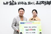 뉴스펀치 김길룡 기자 | 의정부시는 11월 25일 시민 김지민 씨가 ‘100일간 사랑릴레이 배턴 잇기’에 동참해 성금 100만 원을 기부했다고 밝혔다. 김지민 씨는 “기부는 멀리 있는 것이 아니라 내가 할 수 있는 작은 실천에서 시작된다”며 “약소한 금액이지만 주변 어려운 이웃에게 전달돼 많은 도움이 됐으면 좋겠다”고 전했다. 김동근 시장은 “어려운 경제 상황 속에서도 따뜻한 나눔을 실천해 주신 김지민님께 감사드린다”며 “요즘같이 경제가 어려운 시기에 직접 땀을 흘려 번 돈을 이웃을 위해 기부하는 활동은 지역사회에 희망과 온기를 더해줄 것”이라고 말했다. 시는 지난 11월 5일부터 2026년 2월 12일까지 ‘100일간 사랑릴레이 배턴 잇기’ 모금 운동을 진행하고 있으며, 모금된 현금과 현물은 공동모금회와 연계해 의정부시 저소득층에게 지원하고 있다.