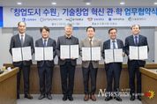 뉴스펀치 박상훈 기자 | 수원특례시가 경기창조경제혁신센터, 4개 대학과 협력해 대학의 기술창업을 발굴하고, 지원한다. 수원시와 경기창조경제혁신센터, 4개 대학은 30일 시청 상황실에서 ‘창업도시 수원 기술창업 혁신 관·학 업무협약’을 체결하고, 협력을 약속했다. 협약 기관들은 대학의 우수한 연구 성과, 인적 자원을 보유한 우수 기술창업기업을 발굴하고, 기술의 사업화를 촉진하기 위해 협력하기로 했다. 수원시는 수원기업새빛펀드의 수원기업 의무투자 약정액으로 투자를 유치하고, 경기창조경제혁신센터는 기업에 멘토링, 엑셀러레이팅(스타트업이 빠르게 성장하도록 지원), 밋업(투자자 유치 행사), 아이알(IR)데이, 투자 등을 지원한다. 대학교는 실험실 창업·창업 보육기업을 추천한다. 이날 협약을 바탕으로 대학창업 특화 프로그램인 ‘새빛 유-테크(U-Tech).판’을 시작한다. 경기창조경제혁신센터의 엑셀러레이팅 인프라를 활용해 우수한 기술력과 성장 잠재력을 갖춘 창업기업을 발굴하고, 기업의 투자 유치 역량을 극대화하는 프로그램이다. 3대 핵심 목표는 ‘인프라 적극 활용’, ‘선순환 구조 구축’, ‘실질적 투자 집