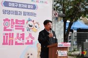 뉴스펀치 김완규 기자 | 박강수 마포구청장은 9월 28일 오후 14시, 마포반려동물캠핑장에서 열린 한가위 맞이 ‘댕댕이 한복 패션쇼’에 참석해 참가자들과 즐거운 시간을 보냈다. 이날 행사에는 반려견 및 반려가족 30여 팀이 참가했으며, 한가위를 맞아 한복을 곱게 차려입은 댕댕이들이 각자 저마다의 모습을 뽐내는 자리였다. 참석한 반려가족들은 다양한 포토존에서 소중한 반려견의 모습을 오래 간직할 수 있었다. 이날 패션쇼는 서울시수의사회 소속 수의사의 심사로 입상견 3팀에 시상을 했으며, 반려견을 위한 건강관리 상담도 진행했다. 또한 보호자 윷놀이 대회와 퓨전 국악 버스킹 등 다양한 행사가 펼쳐져 참가자들 또한 사랑하는 반려견과 즐거운 시간을 보낼 수 있었다. 박강수 마포구청장은 “소중한 댕댕이들과 함께 특별하고 즐거운 추억 많이 만들어가시길 바란다”면서 “아이부터 어른, 그리고 소중한 가족인 반려동물까지 모두가 행복한 펫세권으로 자리할 수 있도록 노력하겠다”고 전했다.