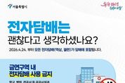 뉴스펀치 박상훈 기자 | 4월 24일부터는 담배사업법 개정·시행에 따라 액상형 전자담배 포함 모든 종류의 담배를 금연구역에서 흡연할 경우, 과태료가 부과된다. 이에 서울시는 개정 사항을 시민에게 적극적으로 안내하는 한편, 현장 점검을 본격 추진한다고 밝혔다. 그동안 합성니코틴을 원료로 한 액상형 전자담배는 법적 ‘담배’에 포함되지 않아 금연구역에서 사용 시 적발되더라도 액상형 전자담배로 확인되면 과태료 처분이 취소되는 사례가 있었다. 또한 온·오프라인 매장에서 별다른 제한 없이 판매·홍보가 이뤄진단 점에서 규제 사각지대가 존재한다는 지적이 있었다. 이번 법 개정으로 이러한 예외는 사라질 예정이다. 앞으로는 금연구역에서 액상형 전자담배를 포함한 모든 담배제품 사용 시 10만 원 이하 과태료가 부과된다. 먼저, 서울시는 시행 초기 혼선을 최소화하기 위해 사전 안내를 강화하기로 했다. 4월 13일부터 4월 23일까지 약 2주간 홍보 및 계도 기간을 운영할 예정이다. 이 기간 동안 법 개정 내용을 알리는 포스터를 배포하고, 담배소매인과 시민을 대상으로 변경 사항을 집중 안내할 계획이다. 이어 24일부터 5