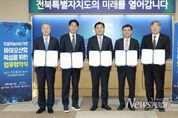 뉴스펀치 김길룡 기자 | 전북특별자치도가 인공지능과 바이오산업을 융합한 지역 신성장 동력 확보에 나섰다. 도는 6일 도청에서 한국기계전기전자시험연구원, 범부처통합헬스케어협회, 전북대학교, 원광대학교 등 5개 기관과 'AI 기반 바이오 산업 육성'을 위한 업무협약을 체결했다. 이날 협약식에는 김관영 도지사를 비롯해 안성일 한국기계전기전자시험연구원장, 심기준 범부처통합헬스케어협회장, 양오봉 전북대 총장, 박성태 원광대 총장이 참석했다. 이번 협약을 통해 참여 기관들은 ▲AI 기반 바이오 산업 생태계 조성을 위한 사업 발굴과 공동 추진 ▲AI 기술을 활용한 연구·산업 기반 구축 ▲산·학·연 협력을 통한 전문인력 양성 및 산업화 지원 등의 협력 체계를 구축해 나갈 계획이다. AI 기반 바이오 산업의 신뢰성과 안전성, 사이버보안 지원체계 구축에도 힘을 쏟는다. 도는 이번 협약을 계기로 AI와 바이오산업이 융합된 지능형 바이오 생태계를 조성해 지역 경제의 미래 먹거리로 발전시킨다는 방침이다. 한국기계전기전자시험연구원은 기계·전기·전자·의료 등 전 분야 시험인증 전문기관으로 약 700명의 인력을 보유하고 있다.