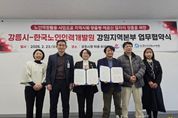뉴스펀치 조평훈 기자 | 강릉시는 23일 오후 2시 시청 15층 회의실에서 한국노인인력개발원 강원지역본부와 노인역량활용사업 추진을 위한 업무협약을 체결하고, 국비 1억 2천만 원을 확보해 지역 맞춤형 공공부문 일자리 창출에 나선다. 이번 협약을 통해 노인역량활용사업을 비롯해 문화유산 돌봄, 생태계 보전 등 ESG 분야와 연계한 일자리 모델을 체계화하여 어르신들의 경력과 전문성을 지역 자산으로 적극 활용할 방침이다. 협약에 따라 시는 안전·환경 및 국가 문화유산을 연계한 어르신 일자리를 발굴하고 한국노인인력개발원 강원지역본부는 사업 관리, 예산 지원, 노인일자리 사업 운영 전반에 대한 행정실무를 지원한다. 박찬영 경제진흥과장은 “업무협약을 계기로 양질의 공공 일자리를 지속적으로 창출하고, 어르신의 소득 기반 강화와 사회참여 확대에 기여하겠다.”라고 말했다.
