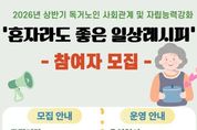 뉴스펀치 박세훈 기자 | 고성군이 운영하는 고성군종합사회복지관은 오는 3월 16일부터 관내 65세이상 독거노인을 대상으로 2026년 상반기 독거노인 사회관계 및 자립능력강화 프로그램'혼자라도 좋은 일상레시피' 참여자 20명을 모집한다. 이번 프로그램은 2026년 지방소멸대응기금을 활용해 추진된 사업으로 지역적 특성을 반영해 기획됐으며, 혼자 생활하는 어르신들의 정서적 안정과 사회관계 형성을 지원하고, 일상생활에 필요한 다양한 활동을 통해 자립능력 향상을 돕기 위해 마련됐다. 프로그램은 2026년 4월 1일부터 6월 10일까지 매주 수요일 오전 10시부터 12시까지 총 10회기로 운영되며, 내용은 정서안정 활동을 비롯해 △요리교실 △손바느질 △영양 및 위생 △악기 배우기 등 참여형 체험 프로그램으로 구성되어 어르신들이 서로 소통하고 교류하며 즐겁게 참여할 수 있도록 운영될 예정이다. 모집기간은 2026년 3월 16일부터 3월 27일까지 선착순 모집이며, 고성군 관내 65세 이상 독거노인 20명을 대상으로 한다. 참여를 희망하는 군민은 고성군종합사회복지관 분관(송학로 47-3)에 방문하거나 전화를 통해