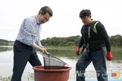 뉴스펀치 김길룡 기자 | 김동연 지사가 이번에는 달달투어 도중 ‘한탄강 청년어부’를 만났다. 바다에서 하는 어업 외에 내수면어업(육지의 하천, 호수 같은 담수에서 이뤄지는 어업)을 지원하겠다는 메시지였다. ‘한탄강 청년어부’는 구독자 17만 명을 자랑하는 유튜브 채널 이름이자 운영자인 1988년생 김은범씨의 닉네임이기도 하다. 오늘 김 지사는 임진강(임진강은 한탄강과 같은 줄기) 수위 점검을 한 뒤 조업을 마치고 돌아온 한탄강 청년어부의 고깃배 ‘왕건1호’에 성큼 올라섰다. 청년어부가 활어통 뚜껑을 열어 갓 잡아온 물고기를 뜰채로 들어올려 김 지사에게 보여줬다. 만선까지는 아니어도 활어통에는 물고기가 가득 담겨 있었다. 메기,쏘가리, 장어, 빠가사리 등도 보였다. 청년어부 김은범씨가 또 한 개의 활어통을 열자 참게가 그득했다. 김 지사는 청년어부와 함께 어획한 참게를 자동차로 옮겨 실었다. 청년어부 김은범 씨는 한탄강(또는 임진강)에서 직접 잡은 물고기로 밀키트를 제작해 온라인 판매하고 있다. 전국에서 민물고기로 밀키트를 만든 것은 그가 처음이라고 한다. 한탄강 어획물로