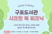 뉴스펀치 김윤걸 기자 | 부산광역시립구포도서관은 도서관 주간을 맞아 오는 18일과 19일 이틀간 도서관 앞 온빛광장에서 도서관 이용자를 대상으로 이색 대출 서비스 ‘시크릿 북 피크닉’을 운영한다. 이번 행사는 이용자들에게 색다른 독서 경험을 제공하고 도서관 이용에 대한 흥미를 높여 책 읽는 문화를 확산하기 위해 마련했다. 참여자는 도서관 2층 문적원2에서 ‘시크릿 북 피크닉 세트’를 대여한 후 온빛광장에서 자유롭게 독서를 즐길 수 있다. 세트는 피크닉 바구니, 돗자리, 접이식 테이블 및 의자, 필사 체험용 키트와 시크릿 북 2권으로 구성되어 별도의 준비 없이도 야외 독서를 편리하게 체험할 수 있도록 했다. 특히 세트에 포함된 도서는 제목과 저자 대신 10가지 키워드만 제시하여, 이용자가 자신의 취향에 맞는 키워드를 선택해 예상치 못한 책을 만나는 즐거움과 새로운 독서 경험을 제공한다. 행사 운영 시간은 오전 10시부터 오후 4시까지이며, 하루 10팀을 대상으로 운영한다. 자세한 사항은 구포도서관 문적원2로 문의하면 된다. 신미향 구포도서관장은 도서관 앞 온빛광