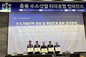 뉴스펀치 강영선 기자 | 충북도는 18일(목) 청주오스코에서 수소경제 실현을 위한 ‘충청북도 수소산업 미래동행 컨퍼런스’를 개최했다. 이번 컨퍼런스는 충북도의 수소산업 정책과 그간의 성과를 공유하고, 산업·인력·기술이 함께 성장하는 미래 수소산업 발전 방향을 논의하기 위해 마련됐다. 행사는 ▲충청북도 수소경제위원회 ▲수소기술인력 양성 및 취업연계 협력 업무협약 ▲2025년 충북 수소산업 육성 유공자 표창 ▲제20회 충청북도 수소산업 육성 산학연관 기술교류회 등으로 진행됐다. 이날 행사에는 현대자동차, 제이엔케이글로벌, 한국수자원공사, 한국가스안전공사, 한국가스기술공사, 고등기술연구원 등 수소 관련 기업·기관 관계자를 비롯해 충청북도 수소경제위원회(위원장 경제부지사), 시군 공무원, 도내 유관기관 및 대학 관계자 등 100여 명이 참석했다. 첫 순서로 열린 '충청북도 수소경제위원회'에서는 2026년도 충북도 핵심사업인 ‘청주시 수소도시 조성사업’의 마스터플랜 수립을 위한 수소전문가 자문이 이루어졌다. 충북도는 이날 제시된 의견을 면밀히 검토해 향후 마스터플랜 수립 과정에 적극 반영할 계획이다. &n