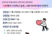 뉴스펀치 김길룡 기자 | 인제교육도서관은 12월 4일 10시 학부모 16명을 대상으로 ‘부모 교육 특강’을 운영한다. 이번 특강은 색채심리를 활용해 부모와 자녀의 감정과 성향을 이해하고, 긍정적인 소통 문화를 확산하기 위해 마련됐다. 강의 주제는 ‘사랑해서 이해하고 싶은, 나와 아이의 컬러 이야기’로, 색채를 매개로 한 다양한 질문들을 통해 부모가 자신의 성향을 파악하고 내면의 감정과 가치관을 탐색할 수 있도록 구성됐다. 또한 ‘자기만의 컬러 액자 제작 만들기’, ‘나를 위한 격려 메시지 작성’ 등 체험 프로그램을 통해 감정 세계를 색으로 표현해 보는 시간을 갖는다. 참가 신청은 11월 25일 10시부터 27일 17시까지 온라인으로 접수할 수 있다. 김성훈 관장은 “이번 특강은 부모가 자신을 이해하고 자녀와의 관계를 깊이 이해하는 기회를 제공하고자 기획됐다”며, “색채심리를 활용한 이번 활동이 부모와 자녀가 함께 성장하는 건강한 학습 문화를 만드는 계기가 되길 바란다.”고 전했다.