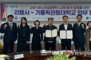 뉴스펀치 김길룡 기자 | 강릉시와 가톨릭관동대학교는 20일 오전 10시 30분 시청 8층 시민사랑방에서 강릉시립노인요양센터 교육·봉사 협력을 위한 업무협약을 체결한다. 이번 협약식은 지난 11월 4일 개원한 강릉시립노인요양센터가 지역사회 속 공립 치매전담형 노인요양시설로서 본격적인 운영에 들어선 가운데, 노인 돌봄 서비스 품질 향상과 더불어 지역 대학과의 연계 협력을 통해 현장 인재 양성 기반을 확립한다는 취지로 마련됐다. 이번 협약을 통해 강릉시와 가톨릭관동대학교의 사회복지학과 외 6개 학과는 ▲요양센터 입소 어르신 대상 돌봄 서비스 강화 ▲노인성 질환에 특화된 공공 요양 서비스 확대 ▲관련 학과 학생들의 현장 교육·봉사활동 연계 ▲지역사회 기반의 보건·복지 전문인력 양성 등을 공동 추진하기로 뜻을 모았다. 협약식에는 김상영 강릉시 부시장, 고재욱 가톨릭관동대학교 사회복지학전공 책임교수, 김윤수 간호학과 부학장, 최다예 치위생학과장 등 양 기관 관계자들이 참석하여 상호 협력의 중요성에 대해 의견을 나눈다. 김상영 강릉시 부시장은 “공립 노인요양시설이 대학과 협력하여 교육·봉사·연구 기능을 수행하는