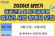 뉴스펀치 김길룡 기자 | 합천군은 2026년 상반기 공공근로 52명 및 지역공동체일자리사업 17명의 참여자를 각각 모집한다고 밝혔다. 접수기간은 11월 27일부터 12월 10일까지이며, 주소지 소재의 읍면사무소 산업지도담당을 방문하여 신청하면 된다. 취업취약계층 및 저소득층의 생계안정과 지역경제 활성화를 위하여 실시하는 공공일자리사업의 참여대상은 ▲만 18세 이상 합천군민으로서 ▲가구소득이 기준중위소득 60% 이하 ▲재산이 3억원 이하인 자이다. 사업기간은 내년 1월 12일부터 6월 30일까지이며, 주요 근무조건으로 ▲시간당 임금 10,320원 ▲간식비 5,000원 ▲주휴수당 및 연차, 유급휴일 제공이 있다. 각 사업별 공고문과 신청서류는 합천군 홈페이지'분야포털'채용공고에서 확인할 수 있다.
