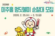 뉴스펀치 정홍균 기자 | 미추홀구종합자원봉사센터는 3월 13일까지 ‘2026년 미추홀구 멍딧불이 순찰대’로 활동할 반려 가족을 모집한다고 밝혔다. 반려견 순찰대는 반려견과 함께 산책하며 지역 내 위험 요소를 발견하고 관계 기관에 신고하는 등 생활 속 안전 지킴이로, 올바른 반려문화 확산과 지역 안전망을 구축할 계획이다. 이번 모집을 통해 총 30가정(60명 이내)을 선발하며, 미추홀구에 거주하고 정기적인 순찰 활동이 가능한 반려견 가족이면 신청할 수 있다. 선발된 반려견과 반려인은 발대식 이후 정식 순찰대로 활동하게 되며, 주 1회 이상 순찰을 진행하고, 연 1회 반려견 문화축제 ‘미추홀 댕댕 페스타’를 통해 반려인 간의 교류를 활성화하고, 성숙한 반려문화를 조성해 나갈 계획이다. 센터 관계자는 “멍딧불이 순찰대는 반려견과 함께하는 일상 속 산책이 곧 지역을 지키는 자원봉사 활동으로 이어지는 의미 있는 사업”이라며 “많은 반려 가족이 참여해 안전하고 따뜻한 미추홀구를 함께 만들어가길 바란다.”고 전했다. 자세한 사항은 미추홀구종합자원봉사센터 홈페이지에서 확인할 수 있다.