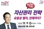 뉴스펀치 김길룡 기자 | 성남시는 오는 12월 9일 오후 3시 30분~5시 30분 시청 1층 온누리에서 ‘자산관리 전략’을 주제로 한 올해 희망성남 토크콘서트 마지막 강연을 연다. 앞선 11월 19일 ‘부동산 전망과 내 집 마련 전략(고종완 한국자산관리연구원장)’에 이은 경제 특강 2탄이다. 이날(12.9) 초빙 강사는 김광석 한국경제산업연구원 경제연구실장이다. 강연자는 ‘유동성 랠리’와 빠르게 변화하는 경제 환경 속에서 국내외 주요 경제 현안에 대해 알기 쉽게 설명한다. 이와 함께 유동성 장세의 지속 여부, 실질적인 투자 운용 방향, 향후 경제전망, 자산관리 전략에 관한 강연을 한다. 김광석 실장은 ‘경제 읽어주는 남자’ 저자로 알려진 경제전문가다. 현재 한양대학교 겸임교수로도 재직 중이며, 에너지경제연구원 전문연구원, 현대경제연구원 선임연구원, 삼정KPMG 경제연구원 수석연구원 등으로 활동했다. 강연은 무료로 진행되며, 성남시 평생학습 통합 플랫폼 ‘배움 숲’ 홈페이지를 통해 선착순 600명까지 신청할 수 있다.