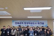 뉴스펀치 정홍균 기자 | 2025년 전북권역 평생학습도시 워크숍이 지난 11일 부안군 일원에서 개최됐다. 이번 워크숍에는 전북권역 11개 시‧군과 전북특별자치도, 전북평생교육장학진흥원등 30여명이 참여하여 평생학습도시간 협력 강화와 미래 학습도시 발전 방향을 함께 모색했다. 워크숍은 특강과 청우평생학습관·줄포만 노을빛정원 워케이션센터·청자박물관 등 주요 거점 탐방으로 구성됐으며, 실무자들은 다양한 현장을 직접 경험하며 평생교육 운영 전반에 대한 이해를 높였다. “기획의 관점을 바꾸기 위한 창의적 기획법” 특강을 통해 실무자들은 지역 여건에 맞는 평생학습 사업을 설계하고 추진할 수 있는 기획 역량을 한층 강화했다. 또한 부안의 생태·문화 자원을 활용한 다양한 사례를 접하며 각 지자체가 적용할 수 있는 실천적 아이디어와 지역 특화 학습도시 모델에 대한 인사이트를 확보했다. 권익현 부안군수는“이번 워크숍을 통해 전북권 학습도시간 협력이 더욱 견고해졌다”며,“부안군은 평생학습 대표도시로서 전북권역의 학습도시 발전을 선도하고, 시군을 연결하는 가교 역할을 적극적으로 수행하겠다”고 말했다. &nb
