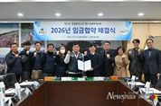 뉴스펀치 정홍균 기자 | 장수군은 군청 2층 회의실에서 전국공공운수노조 전국자치단체공무직본부 장수군지부(지부장 윤동수, 이하 ‘장수군 공무직지부’)와 2025년 임금협약을 체결했다고 26일 밝혔다. 이날 협약식에는 최훈식 장수군수를 비롯한 노사 양측 교섭위원 11명이 참석했으며 협약서 서명을 통해 장수군 공무직지부와 2025년·2026년 임금협약을 확정했다. 이번 협약은 올해 7월부터 노사 간 상견례, 실무교섭 등을 거쳐 추진됐으며 상호 신뢰와 존중을 바탕으로 합리적인 합의를 도출한 점에서 의미가 크다. 주요 협약 내용은 기말상여금 인상과 통상임금에 포함되는 임금 항목 변경 사항 반영이다. 군은 재정 여건을 종합적으로 고려하는 한편, 공무직 근로자의 처우 개선과 안정적인 노사관계 구축을 동시에 도모하는 데 중점을 두고 협의를 진행했다. 특히 2024년 12월 19일 대법원 전원합의체 판결로 통상임금 산정 기준이 변경된 것과 관련해 해당 판결의 취지를 반영하여 공무직 근로자의 통상임금 항목을 조정함으로써 제도적 정합성과 노동자의 권익을 함께 고려했다. 장수군은 이번 협약을 통