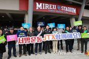 뉴스펀치 박상훈 기자 | 용인특례시는 1일 서울 잠실에서 용인시 처인구를 관통하고 청주공항까지 이어지는 중부권 광역급행철도의 (JTX) 민자적격성 조사 신속 통과와 조기 착공 필요성을 강조하기 위한 범시민 서명운동을 시작했다. 시는 오는 31일까지 한 달간 용인 시민과 대한민국 국민 전체를 대상으로 ‘JTX 조기 착공 서명운동’을 펼치기로 하고, 1일 용인FC 개막전이 열리는 용인미르스타디움에 홍보 부스를 운영했다. 이상일 시장도 이날 아내 김미영 여사와 함께 홍보부스를 찾아 서명했다. 시는 5만 명 이상의 서명 확보를 목표로 온오프라인 서명운동을 전개할 계획이다. 용인특례시는 각 읍면동 행정복지센터 민원실에 서명부를 두고 주민 서명을 받는다. 이와 관련해 시는 선거관리위원회의 사전 검토를 받았다. 시민의 온라인 참여는 시 누리집이나 사회관계망서비스(SNS), 홍보물에 포함된 큐알(QR)코드 등으로 참여할 수 있다. 시는 노선상 JTX가 연결되는 다른 도시들과도 협조 체계를 가동한다. 청주ㆍ안성시와 진천군도 서명운동을 펼칠 예정이다. 용인특례시는 지