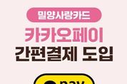 뉴스펀치 박세훈 기자 | 경남 밀양시는 밀양사랑카드 이용자의 결제 편의성을 높이기 위해 오는 23일부터 카카오페이 간편결제 서비스를 도입한다고 밝혔다. 이번 서비스 도입에 따라 이용자들은 카카오페이 앱 내 결제수단에 밀양사랑카드를 미리 등록하면, 별도의 실물카드 소지 없이도 바코드나 QR 스캔 방식 등으로 간편하게 결제할 수 있게 된다. 그동안 실물카드를 소지해야 했던 번거로움이 해소되어, 모바일 기반의 결제 환경이 크게 향상될 것으로 보인다. 본 서비스는 3월 23일 오전 9시부터 본격적으로 시행된다. 시는 최근 급증하는 비대면·모바일 중심의 소비 트렌드에 발맞춰 이번 서비스를 도입함으로써, 젊은 층을 비롯한 다양한 시민들의 접근성을 높이고 지역 화폐인 밀양사랑카드의 사용 활성화에도 크게 기여할 것으로 기대하고 있다. 밀양시 관계자는 “이번 카카오페이 간편결제 도입으로 시민들이 보다 편리하게 밀양사랑카드를 이용할 수 있게 됐다”며 “앞으로도 다양한 결제수단과의 연계를 통해 이용 편의성을 지속적으로 개선해 나가겠다”고 말했다.