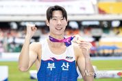 뉴스펀치 김길룡 기자 | 연제구는 연제구청 육상팀 진민섭 선수가 10월 19일 사직아시아드주경기장에서 열린 ‘제106회 전국체육대회’에서 장대높이뛰기 금메달을 획득했다고 밝혔다. 진민섭 선수는 이번 대회 결승전에서 안정된 경기운영과 뛰어난 기량으로 5m 30cm를 뛰어넘어 우승을 차지하며 지난해에 이어 대회 2년 연속 우승의 쾌거를 거뒀다. 명실상부 대한민국 장대높이뛰기의 간판선수임을 입증하면서 연제구의 위상을 드높였다. 연제구청 육상팀 소속으로 꾸준한 훈련을 이어온 진민섭 선수는 “지난해에 이어 올해도 좋은 결과를 낼 수 있어 기쁘다”라며, “응원해 주신 연제구와 연제구민 여러분께 감사드리며, 더욱 노력해 내년 아시안게임에도 좋은 성적으로 보답하겠다”라고 소감을 전했다. 한편 진민섭 선수는 국내 장대높이뛰기 한국신기록(5m 80cm) 보유자로, 지난 ‘백제왕도 익산 전국육상경기대회’, ‘제36회 KTFL 전국실업단대항육상경기’에서 금메달을 획득하며 올해에만 금메달 3개, 은메달 1개를 목에 걸었다.