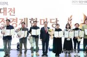 뉴스펀치 이현승 기자 | 대전시는 10일 대전사회적경제혁신타운에서‘2025년 대전 사회적경제한마당’을 열고 한 해 동안 추진된 사회적경제 성과를 공유하는 시간을 마련했다. 이번 행사는 사회적경제 기업인, 시민, 유관기관 관계자 등 약 200여 명이 참석하며 사회적경제의 성장 가능성을 다시 한번 확인하는 자리로 진행됐다. 올해 한마당은 사회적경제 발전에 기여한 유공자(26명) 표창 수여와 한 해의 정책성과를 정리한 2025년 사회적경제성과 영상 상영과 현장에서 직접 사업을 수행한 기업의 우수사례 발표가 이어지며 사회적경제의 변화와 성장을 함께 체감하는 시간이 마련됐다. 이번 행사가 열린 대전사회적경제혁신타운은 올해 개관 이후 사회적경제 기업의 성장‧지원을 위한 핵심 거점으로 자리잡고 있다. 총 51개실 중 43실(84.3%)이 이미 입주 확정 또는 입주를 희망하는 등 높은 입실률을 보였으며, 입주기업들은 컨설팅, 연대조직 활동 등을 활용해 성장기반을 다져나가고 있다. 행사와 함께 운영된 사회적경제장터는 총 18개 기업이 참여해 제품판매와 체험 프로그램을 선보이며 시민들의 발길을 모았으며,