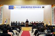 뉴스펀치 조평훈 기자 | 강원도립대학교는 2월 13일 11시, 대학 다목적관에서 제27회 학위수여식을 진행했다. 이번 학위수여식에서 졸업생 230명이 영광스러운 학위를 수여받았으며, 졸업생과 학부모를 비롯해 김진태 강원특별자치도지사, 강원특별자치도의회 의원 등 약 400여 명이 참석해 졸업의 기쁨을 함께 나눴다. 이날 전체 수석을 차지한 레저스포츠과 정소영 학생이 강원특별자치도지사 표창 수상의 영예를 안았으며, 강원특별자치도의회 의장 표창은 바리스타제과제빵과 옥지훈 학생과 사회복지과 고요엘 학생에게 수여됐다. 또한 각 학과 수석 10명에게는 강원도립대학교 총장 표창이 수여됐으며, 우수한 학업 성취와 학과 활동을 통해 대학 발전에 기여한 22명의 학생들에게는 유관기관 및 단체장 표창이 수여됐다. 최종균 총장은 축사를 통해 졸업생들의 노력과 성취를 격려하며 “졸업생들은 지식뿐 아니라 사회가 요구하는 실력과 책임감을 함께 갖춘 인재”라며 사회 진출에 대한 기대를 전했다. 이어 졸업생들에게 끊임없는 도전과 자기 성찰의 중요성을 강조하며, “주변의 기대보다 자신의 내면의 목소리에 귀 기울이며 자