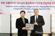 뉴스펀치 박상훈 기자 | 이상일 용인특례시장은 19일 오후 기흥구 백남준아트센터에서 열린 국제기획전 ‘불연속의 접점들’개막식에 참석했다. 이 시장은 개막식에 앞서 다미르 쿠센 주한 크로아티아 대사와 30여분 간 환담을 하며 용인특례시와 크로아티아의 도시 간 교류 협력 문제에 대해 의견을 교환했다. 이번 전시는 백남준아트센터와 크로아티아의 수도 자그레브에 위치한 ‘자그레브 현대미술관’이 공동 기획한 국제 전시로, 고(故) 백남준 작가의 예술 정신과 맥을 같이하는 크로아티아 미디어아트 작품들을 소개하는 등 양국 간 문화예술 교류를 강화하기 위해 마련됐다. 전시는 19일부터 6월 14일까지 백남준아트센터에서 진행되며, 크로아티아 작가 15명이 참여해 영상, 설치, 조각 등 다양한 미디어아트 작품 26점을 선보인다. 개막식에는 이상일 시장과 다미르 쿠센 주한 크로아티아 대사, 베스나 메슈트리치 자그레브 현대미술관장, 허남진 경기문화재단 이사장과 유정주 대표이사, 도의원, 문화예술계 인사, 시민 등 250여 명이 참석했다. 이상일 시장은 “백남준아트센터를 찾은 모든 분들의 용인시 방문을 환영한다