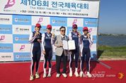 뉴스펀치 김길룡 기자 | 광주광역시체육회는 ‘제106회 전국체육대회’ 조정 여자18세이하부 쿼드러플스컬 경기에서 광주체고 조정팀이 3연패를 달성했다고 밝혔다. 20일 서낙동 조정경기장에서 열린 조정 18세이하부 쿼드러플스컬 경기에 참가한 광주체고 조정팀(김지선3, 노효림1, 배지영1, 천지민1)이 7분9초69를 기록하며 우승을 차지했다. 104회 전국체전부터 이 종목에서 우승을 차지한 광주체고는 3연패 대기록을 달성했다. 경량급 더블스컬 경기에 참가한 김지선, 배지영 선수는 7분23초80으로 금메달을 차지했고, 싱글스컬 경기에 참가한 노효림도 8분09초32로 가장 먼저 결승선을 통과하며 3명의 선수가 2관왕에 올랐다. 남자 18세이하부 강준우(3), 박준호(2)는 더블스컬에서 은메달을 획득했고 강한경(2), 박성빈(2)과 함께 쿼드러플스컬에서도 동메달을 차지했다. 특히 광주체고 조정팀의 상승세를 이어가고 있는 김지선(국가대표)은 지난 14일 창단식을 가진 목송그룹 여자조정팀에 입단 예정으로 우수한 체육인재가 우리 지역에서 성장하는 모범 사례로 주목받고 있다. 궁도 종목 일반부에 참가한 신용식, 윤