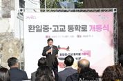 뉴스펀치 김완규 기자 | 마포구는 서울 중구 소재의 환일중고등학교 통학생 안전을 위해 공덕동 소재 급경사로 계단 통학로를 정비하고 11월 14일 오전 개통식을 개최했다. 환일중고등학교는 재학생 가운데 약 40%가 마포구 거주하고 60%가 중구에 거주하고 있어, 두 자치구 학생들의 안전을 위해 주변 통학로 개선이 시급했다. 환일중고등학교 후문 인근인 마포구와 중구의 경계(아현동 386-72~만리동2가 287)에 있는 해당 계단은 초입 폭이 매우 좁아 양방향 통행이 어려울 뿐만 아니라 경사가 가팔라 강우와 결빙 시 낙상사고 위험이 컸다. 평상시에도 보행 안전이 위협받아 이를 개선해 달라는 민원이 오랜 기간 제기돼 왔다. 이에 마포구는 2024년 9월부터 수 차례 현장을 확인하고 급경사 계단의 폭 확장과 경사 완화가 필요하다고 판단했다. 이를 개선하고자 인근 아파트 화단을 활용한 계단 확장 방안을 아파트 측과 세 차례 협의했다. 최종적으로 원만한 협의는 성사되지 않았지만, 마포구는 학생 안전을 최우선으로 두고 지속적으로 다각적인 대안을 검토했다. 그 결과 이용률이 낮