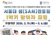 뉴스펀치 박상훈 기자 | 관악구는 서울대학교 사범대학과 함께 추진하는 ‘서울대 쌤(SAM) 멘토링’의 2026년도 1학기 참여기관을 모집한다. '서울대 쌤(SAM) 멘토링'은 관악구의 대표적인 교육 복지 사업이다. 서울대학교(원)생과 지역 대학 동아리, 전·현직 교사로 구성된 멘토단이 관내 초등학교 3학년부터 고등학교 2학년 학생들을 대상으로 맞춤형 학습지도, 진로 상담, 예체능 및 정서 지원 등 눈높이에 맞춘 다채로운 프로그램을 제공한다. 올해는 특히 학습 멘토링의 기반을 강화하기 위해 멘토단 네트워크 구축 및 멘토링 특강을 신설하는 등 ‘관악형 교육 멘토링’의 역량을 한층 높일 계획이다. 또한, 교과 학습 외의 체험 활동을 지원하는 예체능 멘토링의 대상 기관을 기존 지역아동센터에서 다양한 청소년 시설로 확대해 운영한다. 참여 학생들의 호응이 높은 '서울대 캠퍼스 투어' 프로그램도 전년 대비 확대 운영한다. 서울대 쌤(SAM) 멘토와 함께 서울대학교 중앙도서관, 단과대학, 학생회관 등 주요 시설을 견학하며 대학 생활을 직접 체험함으로써 청소년들이 구체적인 진로를 설계할 수 있도록 돕기 위함이다.