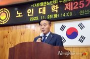 뉴스펀치 김길룡 기자 | 수원특례시의회는 25일, 권선구지회 대강당에서 열린 제25기 권선노인대학 졸업식에 참석하여 대한노인회 어르신들의 졸업을 축하했다. 이재식 의장은 이날 축사에서 “늦었다고 생각하지 않고 꾸준히 배우고 도전하신 어르신들의 모습은 우리 모두에게 큰 감동과 귀감이 된다”며, “오늘의 졸업은 끝이 아니라 앞으로 더 즐겁고 활기찬 삶을 향해 가는 새로운 출발”이라고 강조했다. 이어 “졸업을 다시 한번 축하드리며 어르신들의 앞날에 늘 행복이 함께하길 기원한다”고 덧붙였다. 이번 졸업식은 어르신들의 성취를 축하하고, 평생 학습과 사회 참여를 격려하는 의미 있는 자리로 진행됐다. 행사는 노인강령 낭독, 학사보고, 졸업장 수여, 학생대표 사은사, 노인대학장의 회고사 등으로 이어지며, 어르신들의 학업과 사회 참여에 대한 노고와 열정을 되새기는 시간으로 마련됐다.