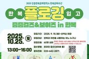 뉴스펀치 김길룡 기자 | 강릉한복문화창작소는 2025년 한복문화주간을 맞아 오는 10월 25일 한복 입고 플로깅 '줍줍걸즈·보이즈 in 한복'을 진행한다. 이번 행사는 올가을 시민과 관광객이 함께 한복을 입고 거리를 걸으며 쓰레기를 줍는 ‘플로깅’을 통해, 우리의 전통과 환경을 동시에 지켜나가는 뜻깊은 시간을 위해 마련됐다. 이번 행사는 한국공예·디자인문화진흥원이 한복문화주간 동안 진행하는 “한복, 다시 입다” 캠페인과도 연계되어, 한복의 일상적 활용과 지속 가능한 전통문화 실천을 함께 보여줄 예정이다. 참가자에게 제공되는 한복은 지역 한복업체들이 기부한 한복을 강릉한복문화창작소에서 새롭게 리폼하여 대여한다. 이번 기부에는 김인정한복, 다홍치마, 좋은날한복, 황금단이 함께하며, 한복에는 기부한 업체를 표시하여, 참가자들이 착용하며 한복과 지역업체의 가치를 동시에 경험 할 수 있다. 지난 9월 15일부터 포스터에 있는 QR코드를 통해 참가 신청을 받고 있으며, 한복과 환경을 사랑하는 누구나 참여 가능하다. 현재 많은 신청이 이어지고 있어 선착순 마감으로 조기 종료가 예상되므