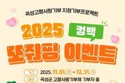 뉴스펀치 김길룡 기자 | 곡성군이 11월 1일부터 12월 31일까지 두 달간 곡성군 고향사랑기부제 “컴백 또줘핑~~”이벤트를 진행한다. “컴백 또줘핑” 이벤트는 곡성군이 지역 농·축협 및 농협중앙회 곡성군지부와 협력해 고향사랑기부제를 통해 지역 농산물 홍보와 지역문제 해결에 기여하기 위해 마련됐다. 곡성군 고향사랑기부 공식 인스타그램에 소개된 소액 기부자들의 따뜻한 사연과 지역문제에 대한 공감에 보답하고, 앞으로 기부에 참여할 분들에게도 감사의 마음을 전하고자 하는 취지를 담고 있다. 두 달 동안 10만 원 이상 기부자에 대해 매달 500명을 무작위 추첨해 1만 원 상당의 지역 쌀을 증정한다. 참여 방법은 고향사랑e음 또는 위기브 등 민간 플랫폼을 통해 곡성군에 기부하면 자동으로 응모되며, 당첨자는 개별 통보된다. 곡성군은 인구감소와 고령화 문제 해결을 위해 다양한 지역 맞춤형 사업을 발굴하고 있다. 현재 고향사랑e음을 통해 ‘곡성에 소아과를 선물하세요 시즌2’, ‘유기동물 보호센터 운영 지원’ 등의 지정기부사업을 추진하며 기부금을 모금 중이다. 군 관계자는“지