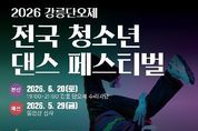 뉴스펀치 조평훈 기자 | 강릉시 청소년수련관은 오는 6월 20일 오후 7시 강릉단오제 수리마당에서 개최되는 ‘2026 강릉단오제 전국 청소년 댄스 페스티벌’의 참가팀을 17일부터 5월 27일까지 모집한다. 청소년 댄스 페스티벌은 세계문화유산 강릉단오제를 통해 청소년들에게 전통문화에 대한 인식을 확산하고, 예술적 재능과 역량을 발휘할 수 있는 무대를 제공하기 위해 마련됐다. 참가 대상은 9세부터 18세까지의 전국 청소년으로 구성된 댄스팀으로, K-POP, 스트릿댄스, 힙합 등 다양한 장르의 퍼포먼스로 참여할 수 있다. 참가팀은 예선(동영상 심사)을 거쳐 본선 진출 10개 팀이 선발되며, 본선 경연은 6월 20일 오후 7시 강릉단오제 수리마당 특설무대에서 진행된다. 총상금 490만 원 규모로 대상 수상팀에게는 200만 원이 수여된다. 참가 신청은 강릉시청소년수련관 홈페이지 공지사항을 통해 신청서를 내려받아 작성 후 예선 영상과 함께 이메일로 제출하면 된다. 강미정 시 인구가족과장은 “청소년들이 강릉단오제라는 전통문화 축제 속에서 주체적으로 참여하고 성장할 수 있는 기회”라며, “전국 청소