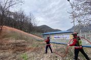 뉴스펀치 조평훈 기자 | 영월군은 영월국유림관리소와 합동으로 산불 취약 공공시설에 대한 산불지연제 사전 살포를 완료하며 산불 대응력을 강화했다고 밝혔다. 이번 산불지연제 살포는 건조한 날씨와 강풍으로 산불 발생 위험이 높아짐에 따라 주요 시설을 보호하고 산불 확산을 사전에 차단하기 위해 추진됐다. 지난 4월 14일에는 국가중요시설 ‘다’급인 한국남부발전 영월빛드림본부를 대상으로 산불지연제를 살포했다. 고성능 산불진화차 2대와 다목적 산불진화차 2대를 투입해 총 3톤의 지연제를 살포했으며, 서측 방면 약 0.5ha 구간에 총연장 800m 규모의 산불 차단선을 조성했다. 이어 4월 15일에는 영월군 양묘장과 환경자원화시설(소각시설)에 대한 추가 살포를 진행했다. 양묘장에는 0.5톤, 환경자원화시설에는 1톤의 지연제를 각각 살포해 산불 확산 방지 조치를 마쳤다. 영월군은 이번 사전 살포를 통해 주요 시설 보호는 물론 초기 대응 시간을 확보하는 등 보다 효과적인 산불 대응 체계를 구축했다. 백윤권 산림정원과장은 “산림청과의 긴밀한 협력을 통해 산불 취약지역과 주요