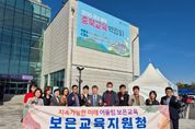 뉴스펀치 김길룡 기자 | 보은교육지원청은 24일 충북교육문화원 및 생명누리공원 일대에서 열린 ‘2025 공감·동행 충북교육박람회’에 보은지역 학교운영위원회 위원장과 간사, 교감 등 20여 명과 함께 참여했다. 이번 방문은 충북교육이 추진해 온 주요 정책과 타 지역의 교육과정 운영 우수사례를 직접 살펴보고, 이를 보은교육에 접목하여 지속가능한 지역교육 발전의 방향을 모색하기 위한 것이다. 또한 같은 날, 학교운영위원회위원장협의회가 주관한 ‘몸활동 꿈·끼 페스티벌’에는 보은지역 학생들이 참가해 열정을 펼쳤다. ▲동광초 댄스팀(5명) ▲탄부초 난타팀(4명) ▲보은여고 밴드부(7명)가 무대에 올라 학생들의 끼와 재능을 뽐냈으며, 박람회를 찾은 보은 교육공동체는 손수 준비한 간식을 나누며 학생들을 응원했다. 박진섭 보은고등학교 학교운영위원장은 “교육박람회를 통해 충북교육의 다양한 성과를 직접 보고 체험할 수 있어 매우 뜻깊었다”며 “오늘의 경험을 바탕으로 보은교육의 발전을 위해 더욱 노력하겠다”고 말했다. 전병일 보은교육장은 “학생들의 생동감 있는 무대를 보며, 교육의 힘이 결국 ‘현장’과 ‘